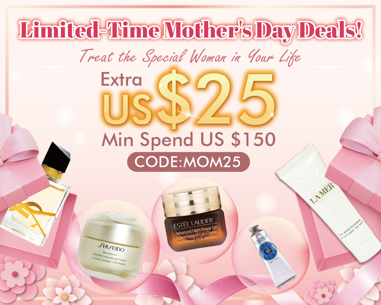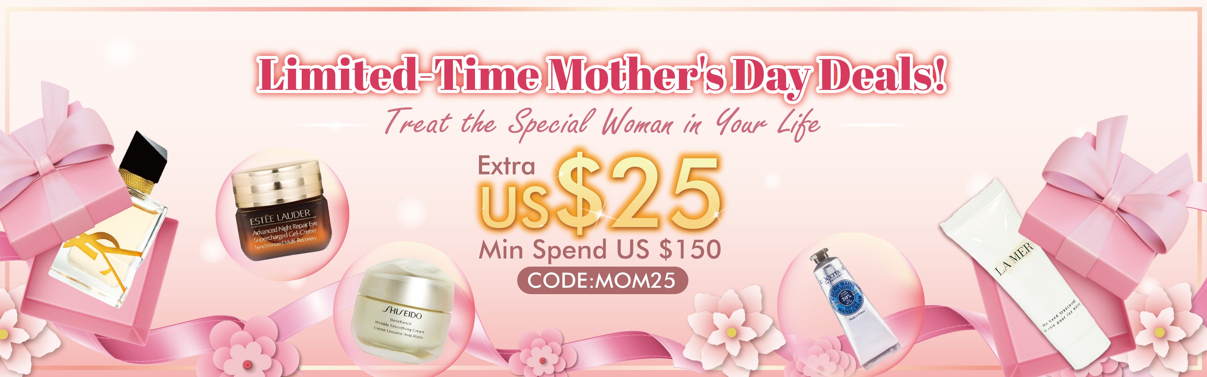 - The discount code “MOM25” is only be used when you spend over USD$150.