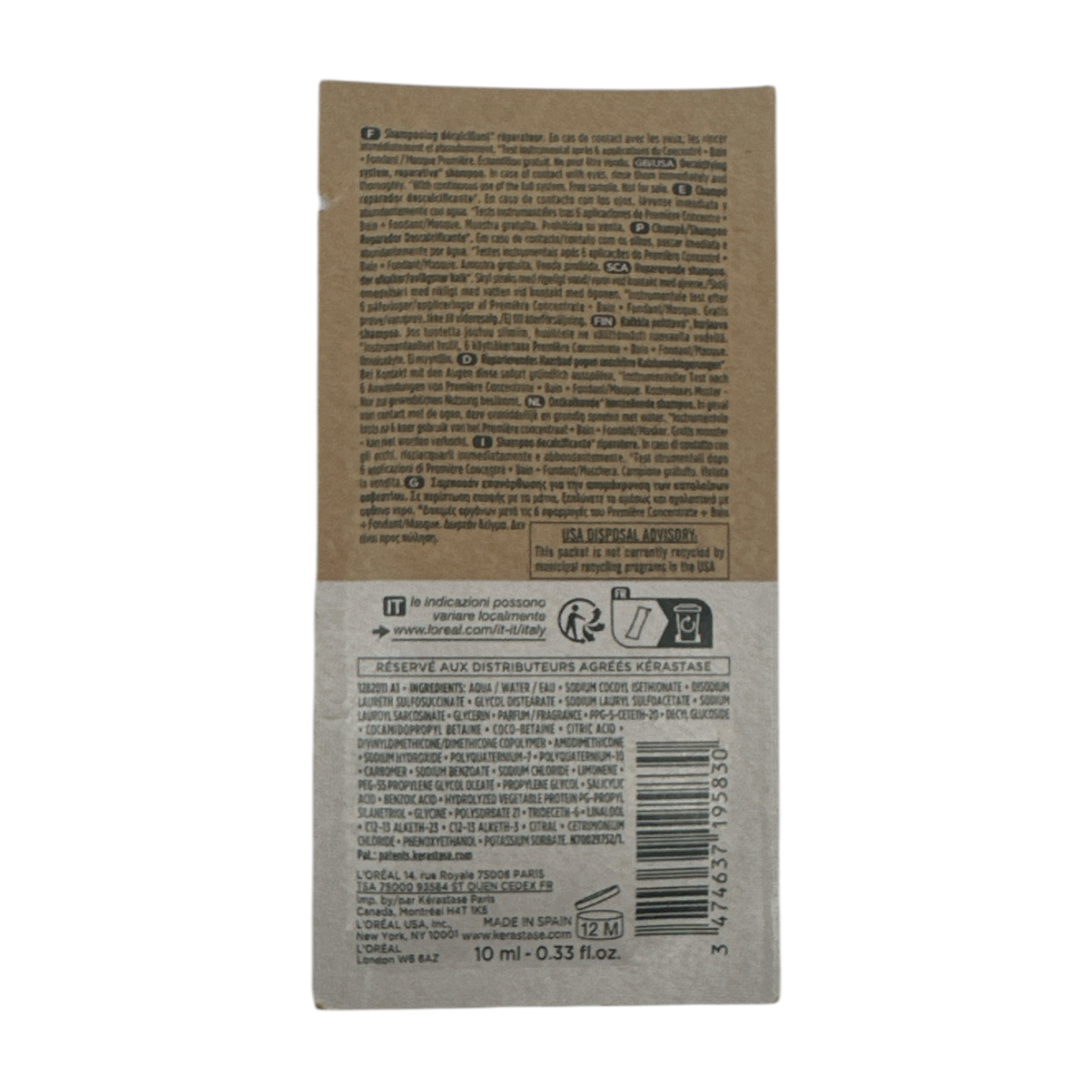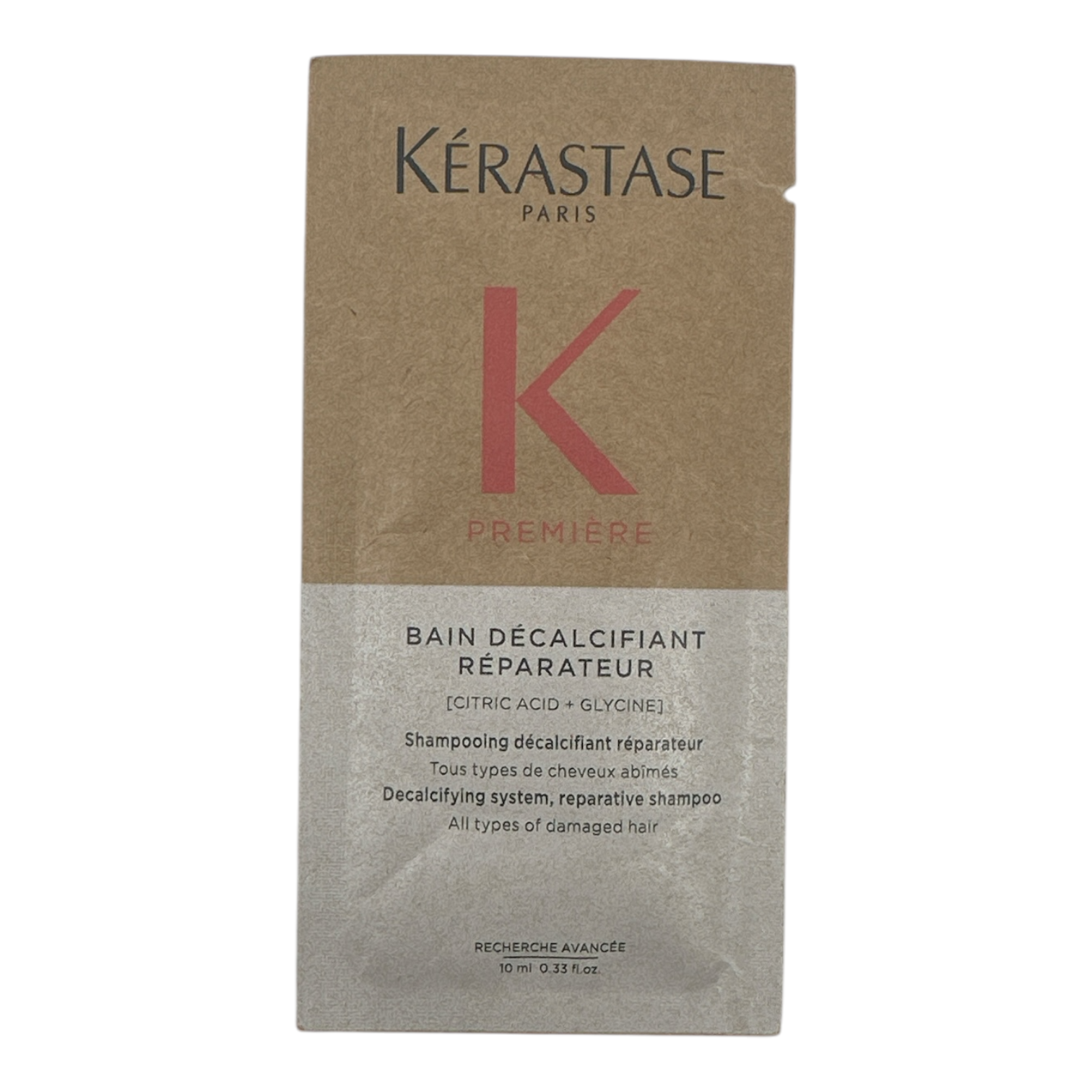 Experience salon-level care with Kerastase Première Bain Décalcifiant Réparateur Shampoo Miniature 10ml, a professional decalcifying shampoo for damaged hair. This repair shampoo for bleached and chemically treated hair gently removes calcium buildup while restoring softness, strength, and shine.
